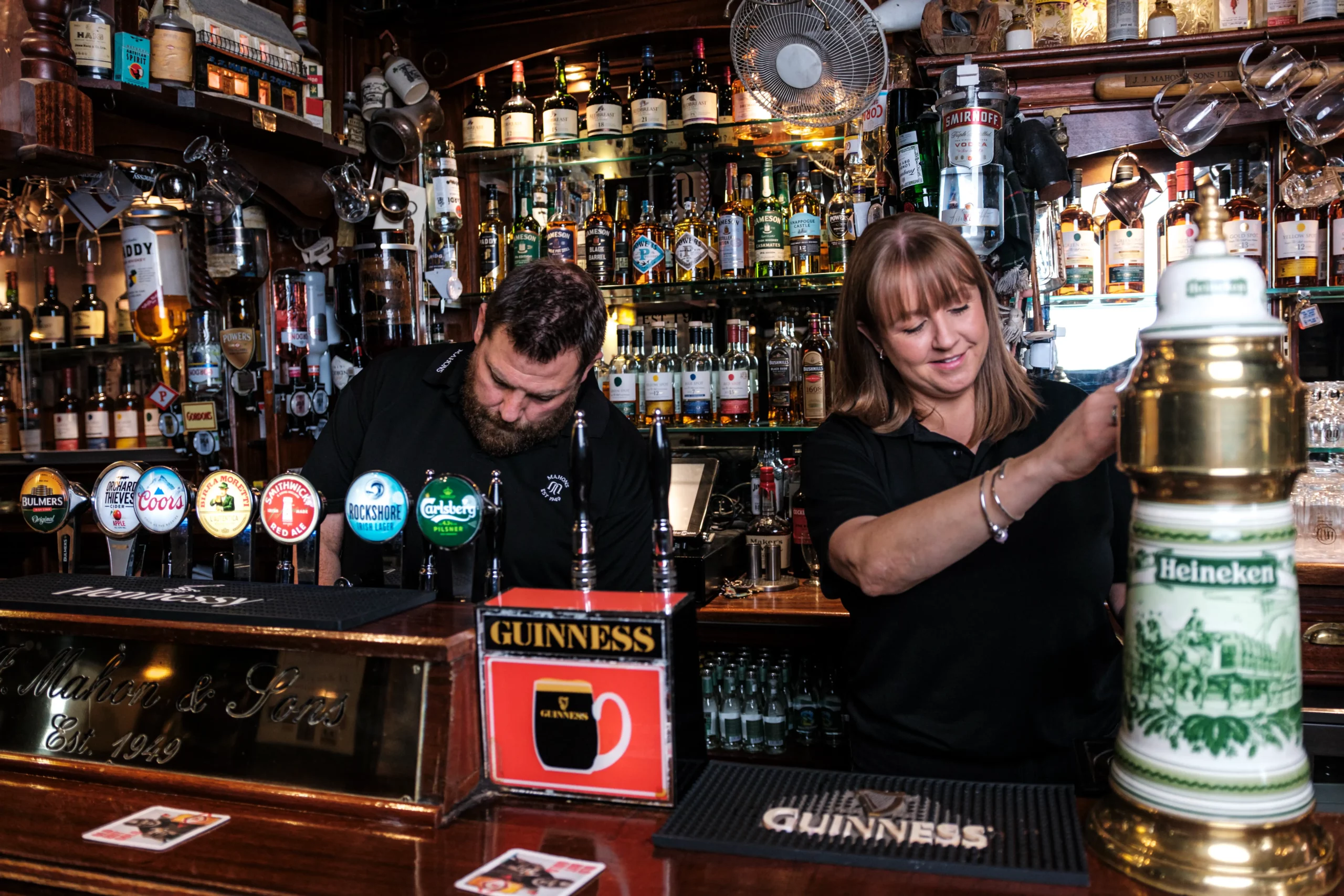 For over 75 years, Mahon’s Bar has been more than just a pub—it’s a meeting place, a storyteller, and a cornerstone of the community. Steeped in history, it has hosted countless important meetings, lively debates, and unforgettable celebrations, all within its warm and welcoming walls. A favourite among locals, travellers, and horse racing enthusiasts, the bar has long been a hub for great conversations and even greater pints.With a commitment to exceptional service and genuine hospitality, our dedicated team carries forward the family tradition, ensuring that every guest feels at home. Whether you’re here for a quiet drink, to relive racing memories, or to create new ones, Mahon’s Bar is a place where history and community come together.